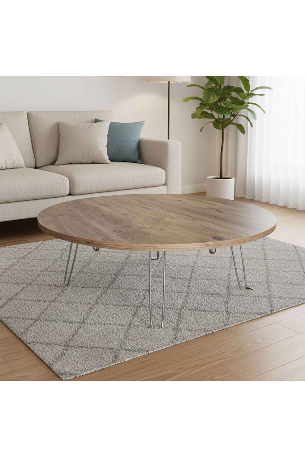 90 cm Çap Ahşap Desenli ve Düz Seçenekli Katlanabilir Yer Sofrası – Oyun Masası | 22 cm
