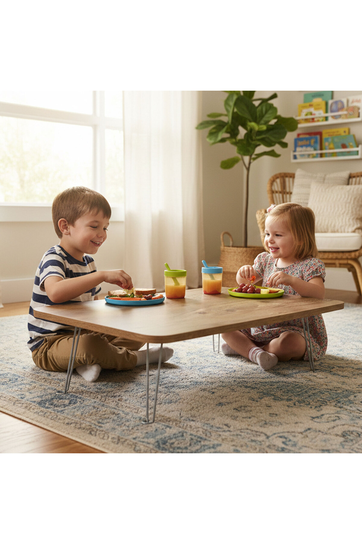 Çocuklarınızın oyun saatlerini daha keyifli hale getirecek bu sofra, aynı zamanda kamp aktiviteleri için de idealdir. Metal ayakları sayesinde dayanıklı ve稳dır. Ahşap desenli suntalem malzemeden üretilmiştir ve sehpa, yemek masası veya kamp masası olarak kullanılabilir.