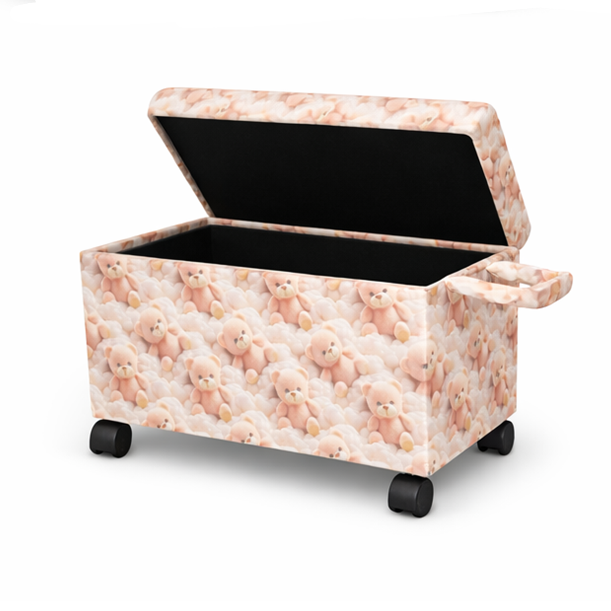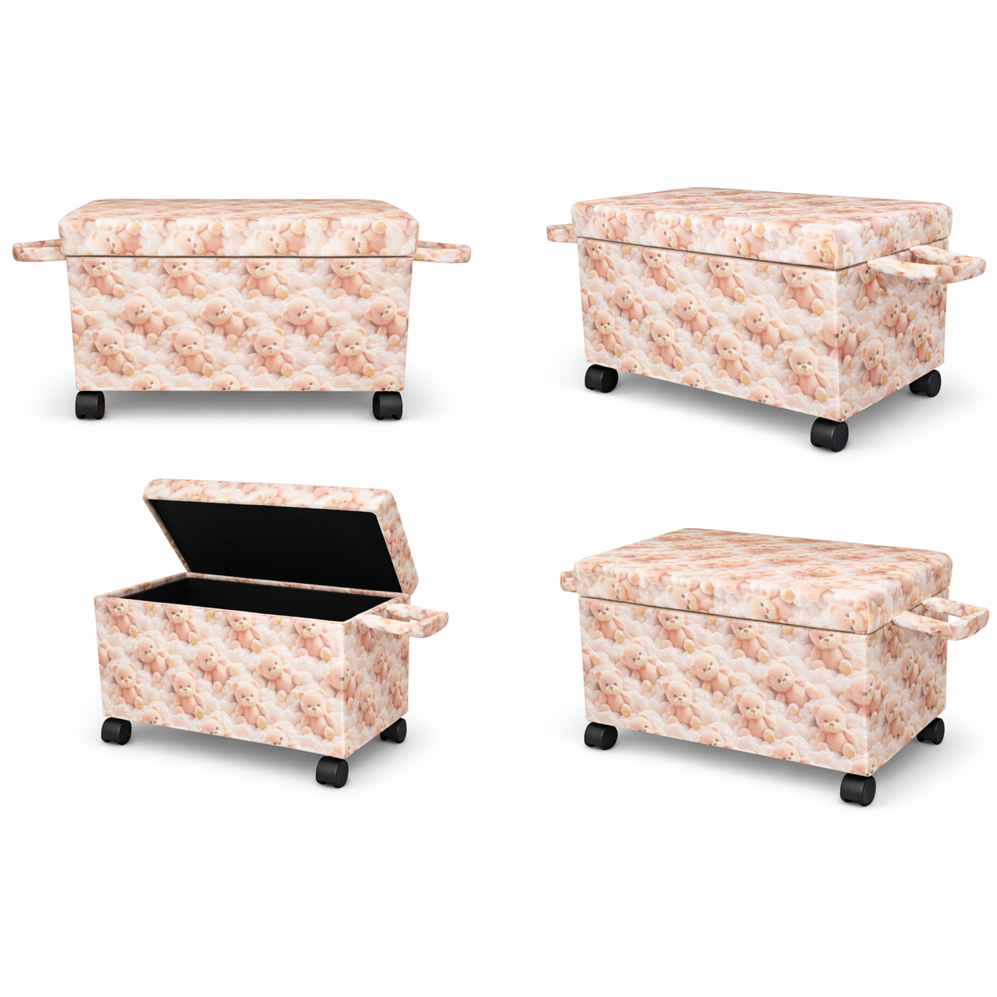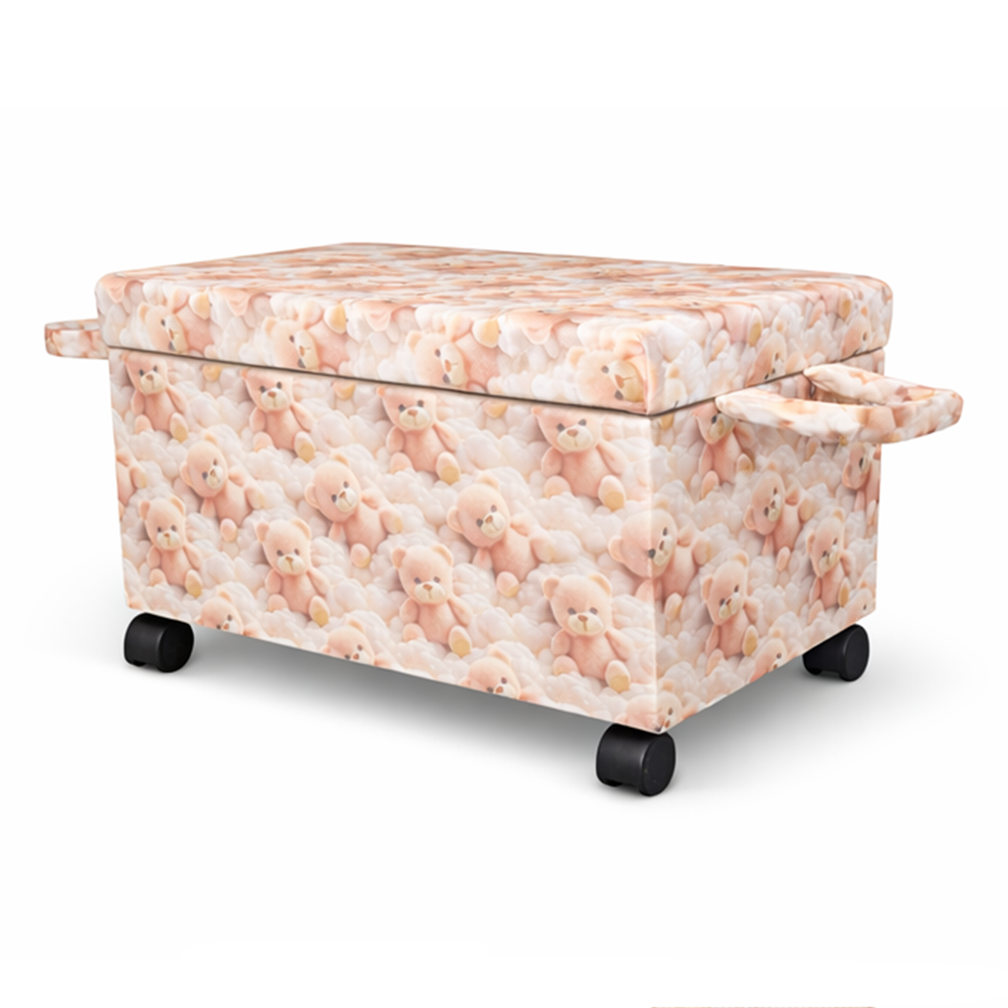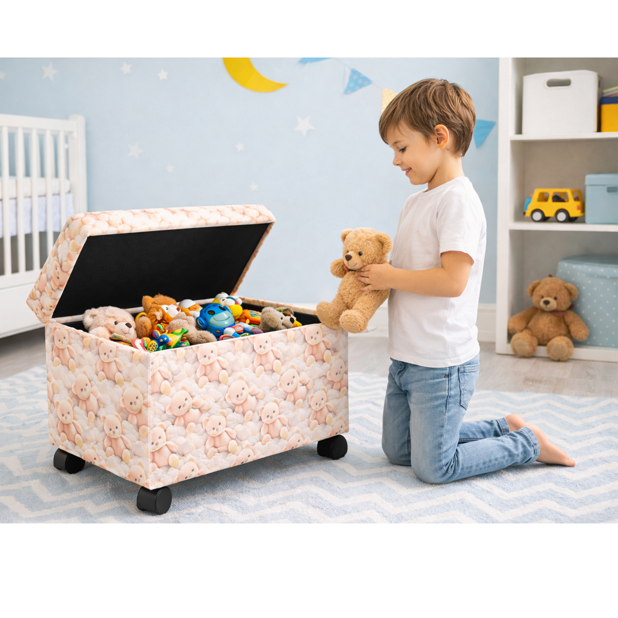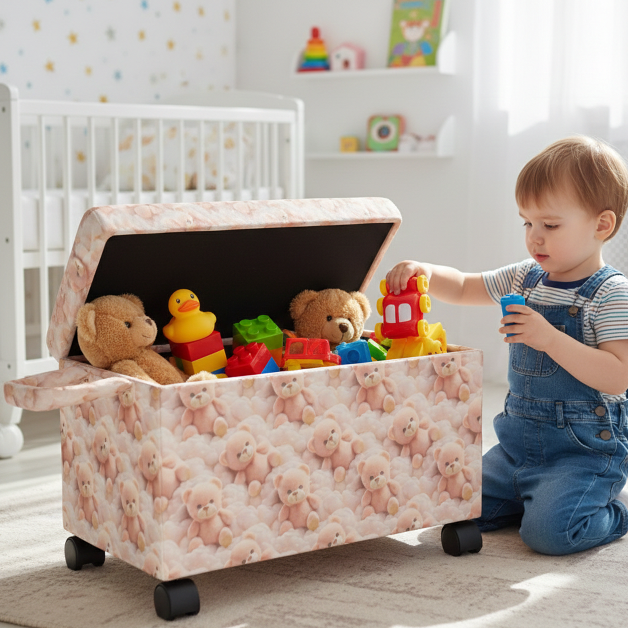 Ayıcık Figürlü Tekerlekli Oyuncak Sandığı/Pufu – Kapaklı Çocuk Odası Saklama Kutusu