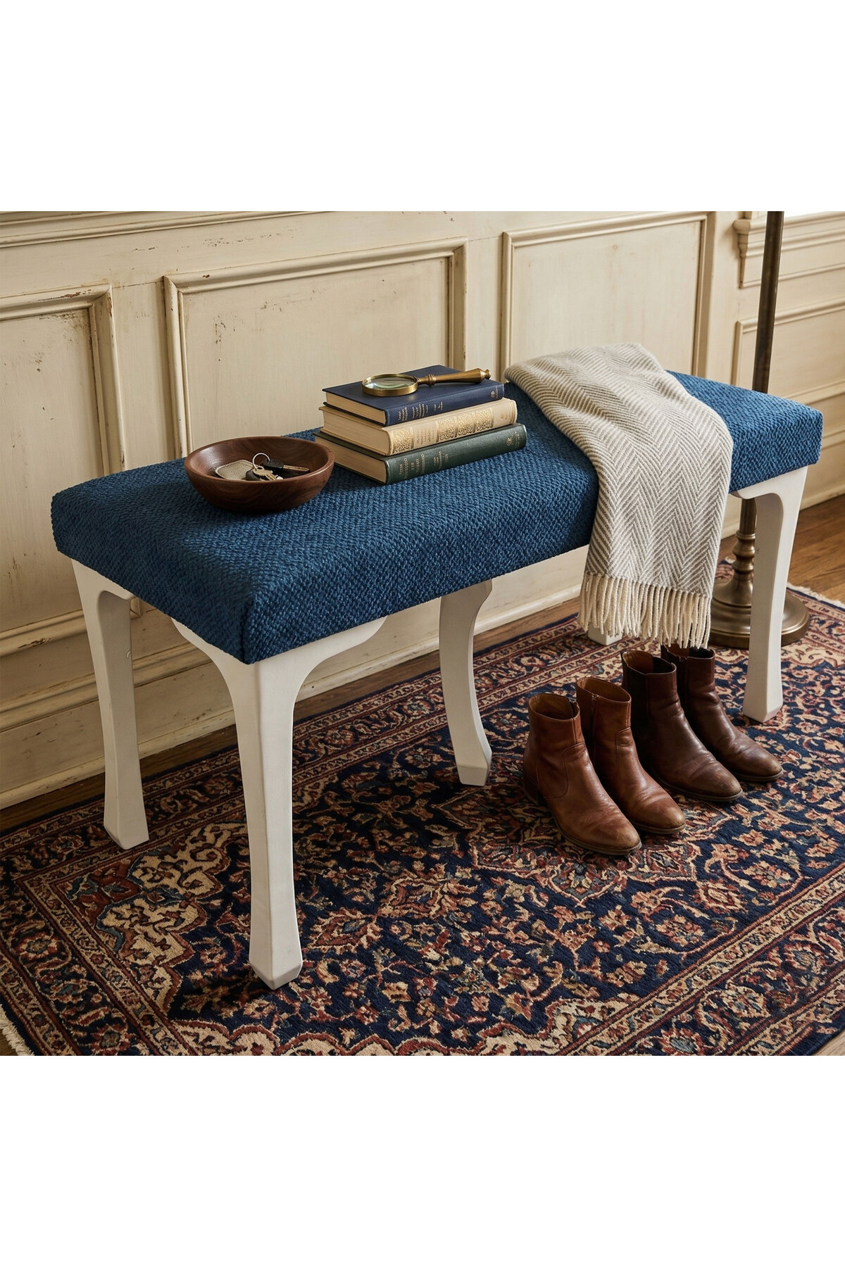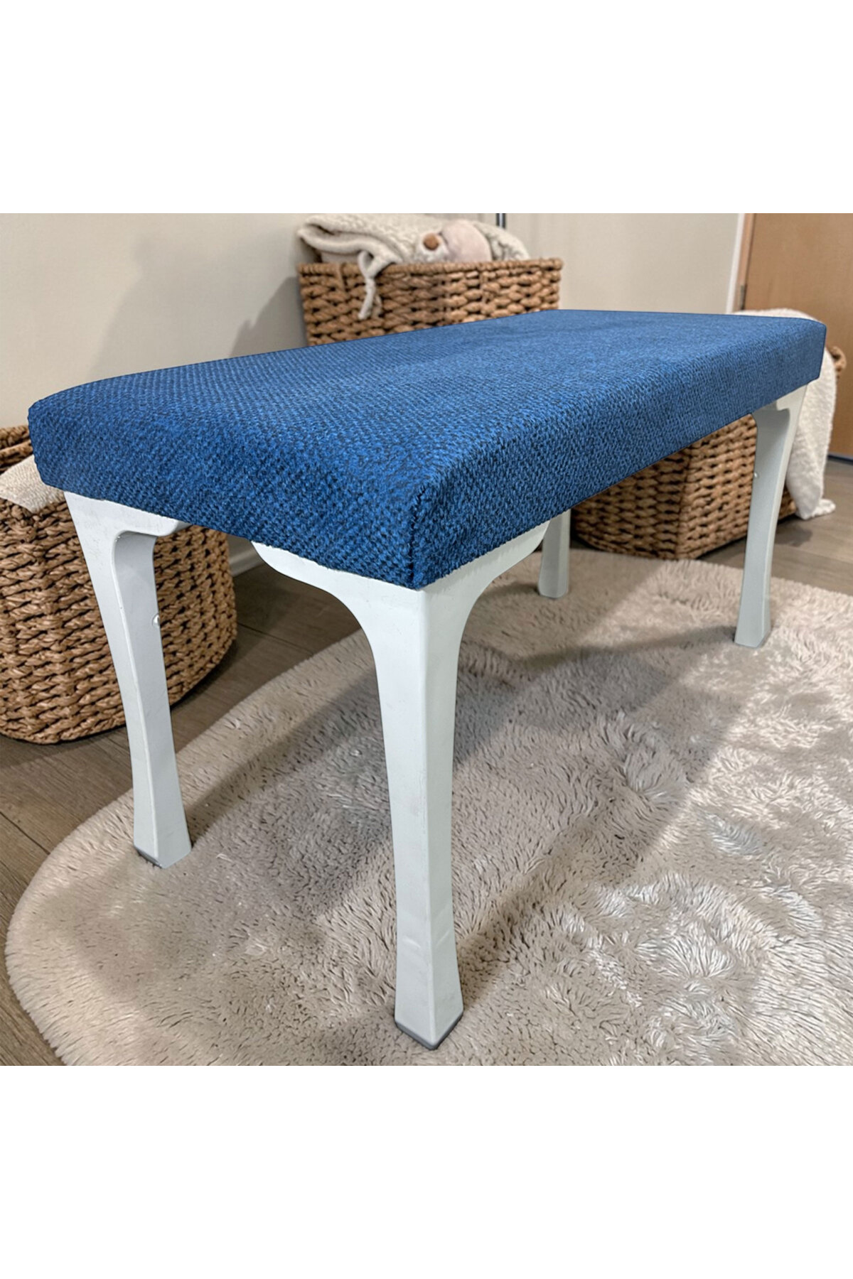 Dekoratif Puf Bench Oturma Bankı – Yatak Ucu, Antre Ayakkabı Giyme Bankı | Lacivert Kumaş Beyaz Ayak