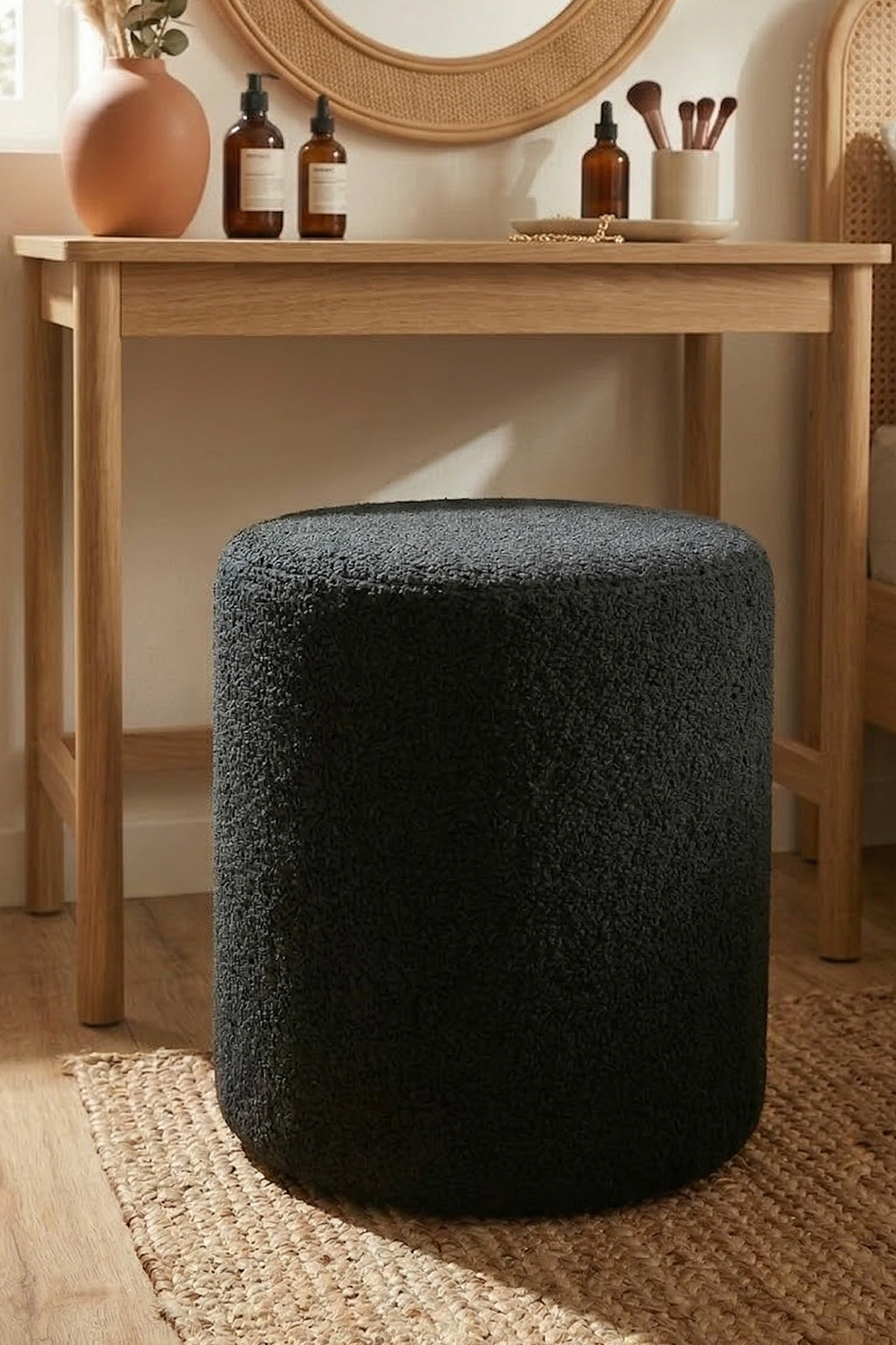 Modern tasarımıyla dikkat çeken Lines teddy kumaş black puf, evinizin dekorasyonuna şık bir dokunuş katıyor; Ahşap gövde materyali sayesinde dayanıklılık ve uzun ömürlü kullanım sunar; Standart özellikleriyle her türlü mekan için ideal bir seçim olan bu puf, silindir formu ile modern stilinizi yansıtır; Kumaş kaplama olmaması, temizliği kolaylaştırır ve leke tutmaz özelliğiyle pratik bir kullanım sağlar;