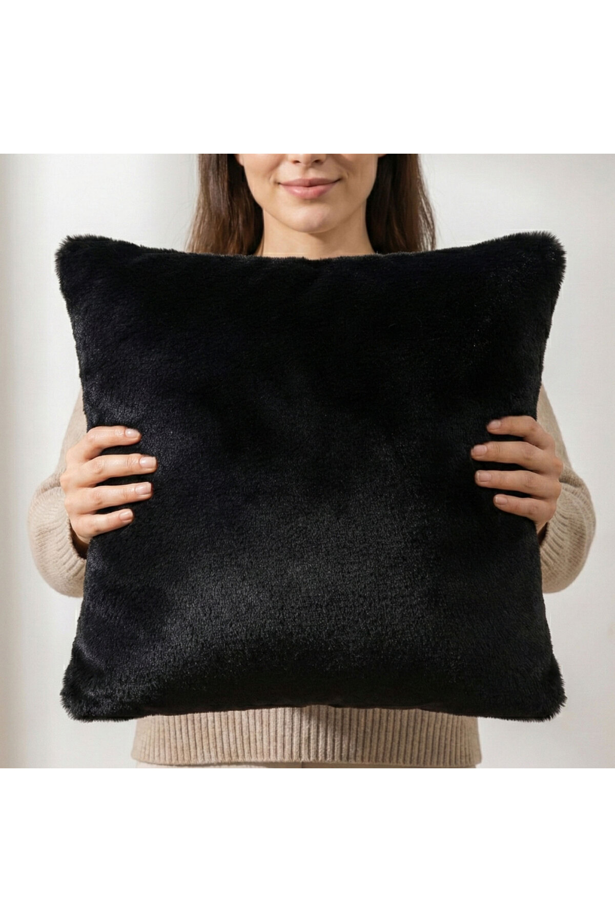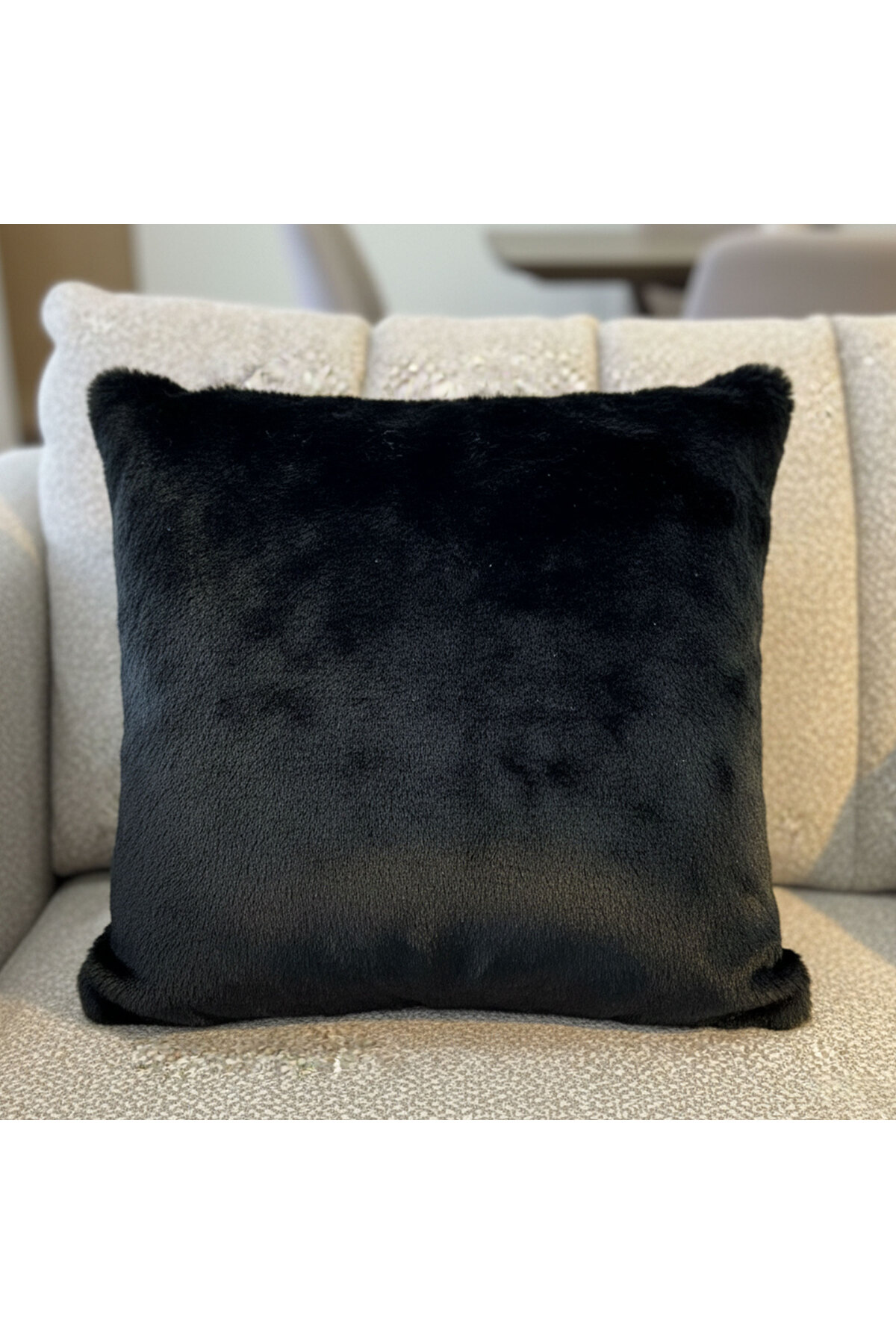 Premium Siyah Peluş Kırlent Kılıfı 45×45 cm – Yumuşak Dokulu, Şık ve Modern