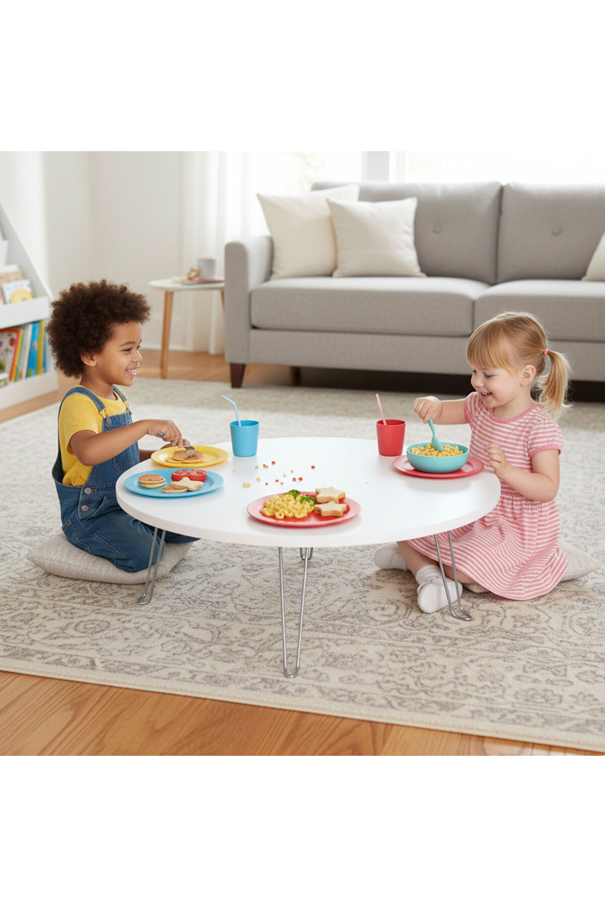 Ratemo Parlak Beyaz Katlanır Yer Sofrası – Çocuk Masası – Oyun Masası 50 cm Genişlik