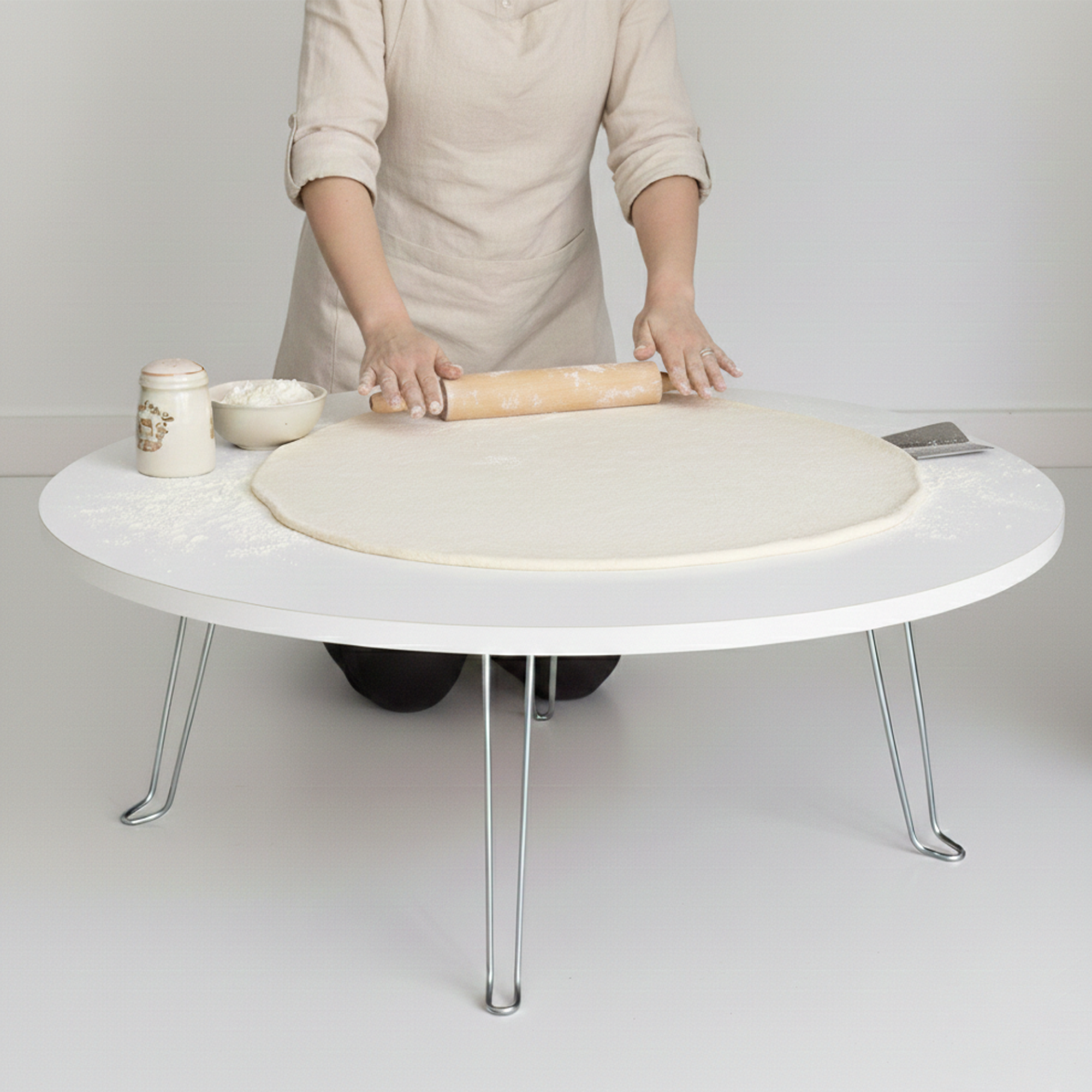 Ratemo Parlak Beyaz Katlanır Yer Sofrası, pratik, modern ve dayanıklı tasarımı ile evinizde veya ofisinizde kullanabileceğiniz ideal bir üründür.