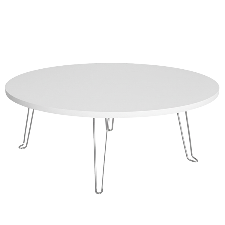 Ürünün metal ayakları, dayanıklı ve sağlam bir yapı sunarken, beyaz renkli suntalem malzemesi modern ve temiz bir görünüm sağlar. Ratemo Parlak Beyaz Katlanır Yer Sofrası, küçük evler, stüdyo daireler veya ofisler için ideal bir seçimdir.