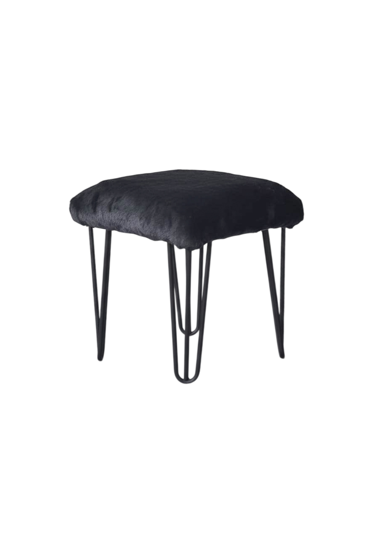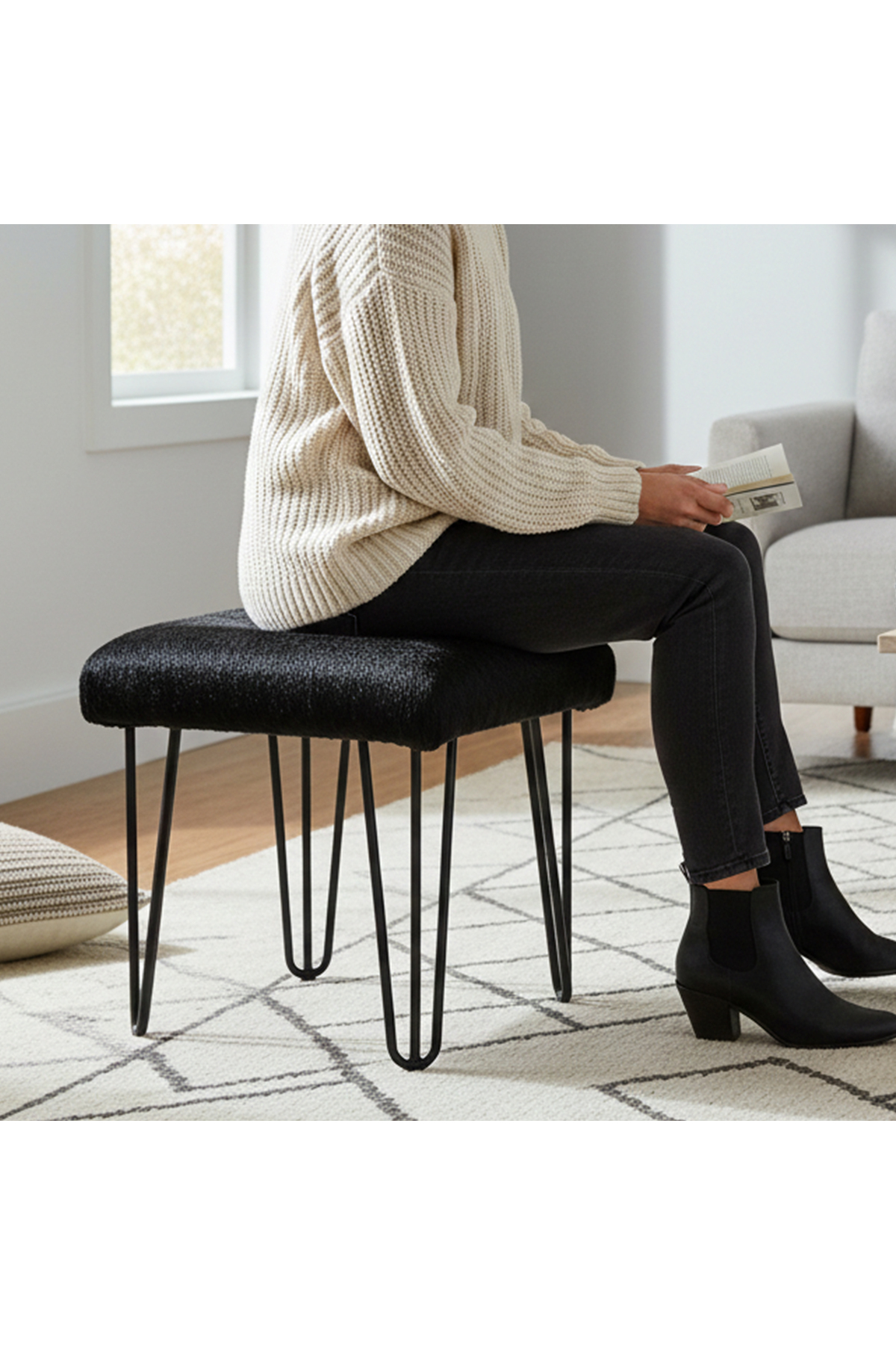 Siyah Peluş Kumaş Kare Puf – Modern & Şık Tasarım