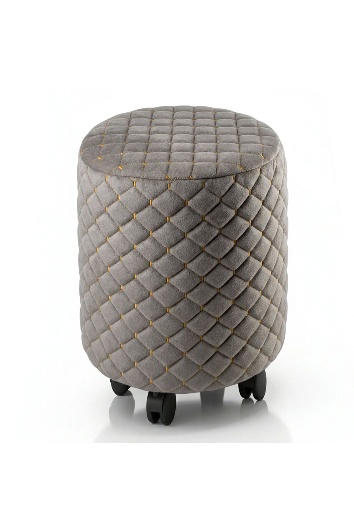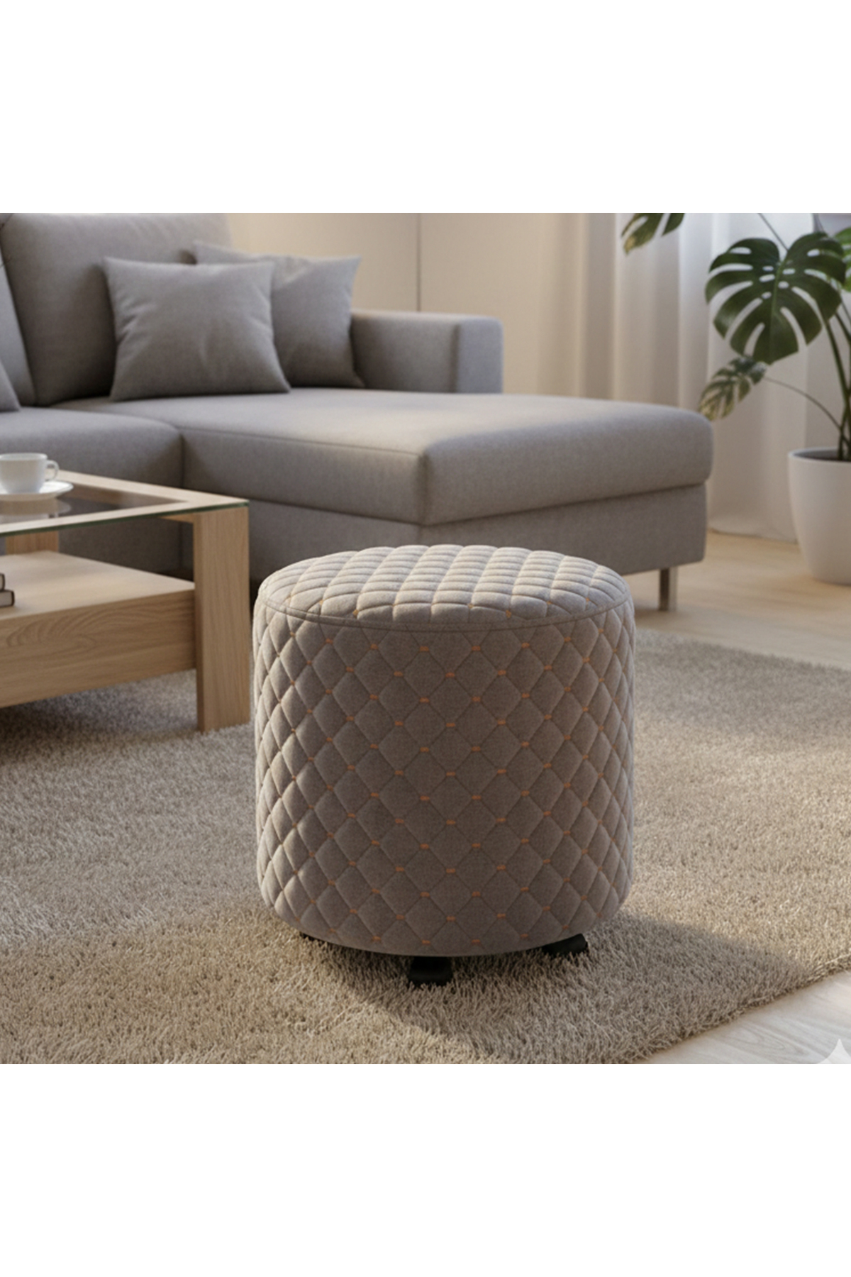 Tekerlekli Puf Tabure 35×40 cm – Döşemelik Kumaş, Sağlam Kasa, 5 Tekerlekli